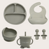 Das Set enthält alles Wichtige für die täglichen Mahlzeiten Ihres Kindes: einen Teller mit drei Fächern, eine Schüssel, ein Silikonlätzchen mit Fach für Essensreste, ein Besteckset (Löffel und Gabel) und einen Trinklernbecher mit Strohhalm . Dies ist das perfekte Set, um selbstständiges Essen zu lernen, gleichzeitig die Kleidung Ihres Kindes zu schützen und den Eltern das Aufräumen zu erleichtern.